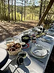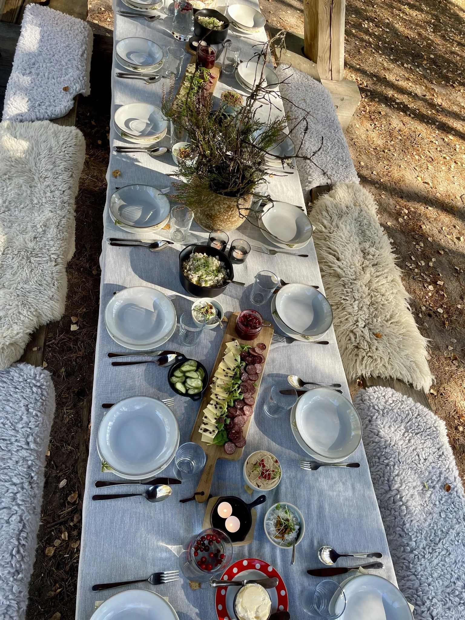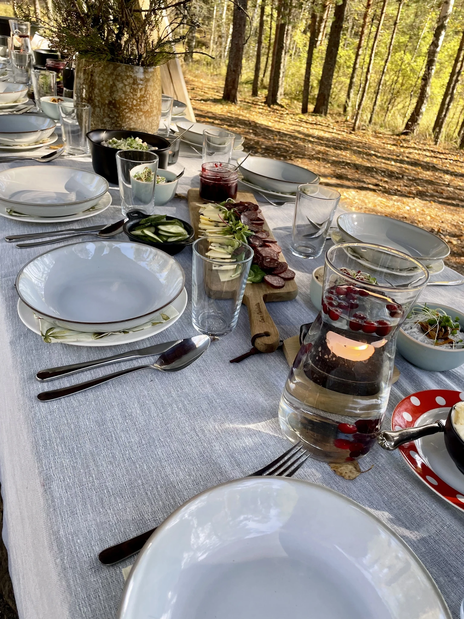 A beautifully set table in nature – forest or seaside